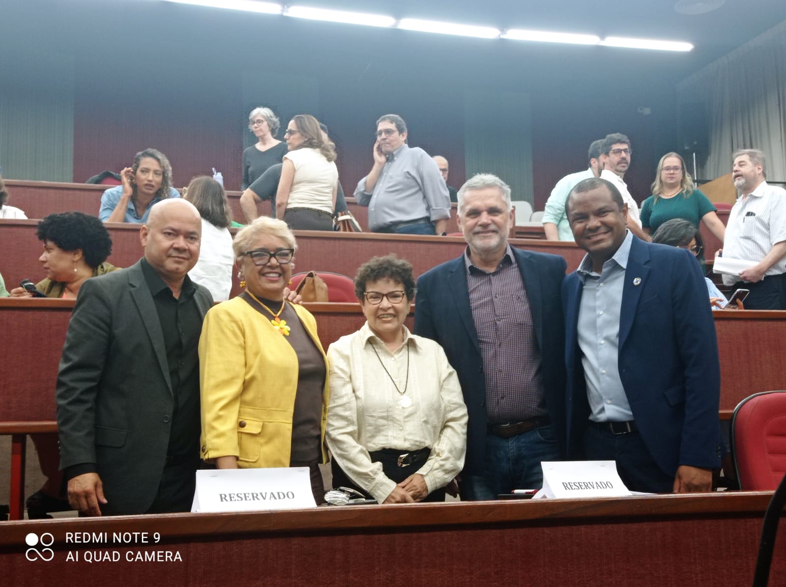 Acompanhada de grandes lideranças, a FNE compôs a mesa de abertura junto a reitora da UERJ, Gulnar Azevedo; Jerzey Timóteo, secretário adjunto do Ministério da Saúde; Maria Silva, representante da Organização Pan-Americana da Saúde (OPAS) e Sônia Acioli, da Associação Brasileira de Enfermagem (ABEn).