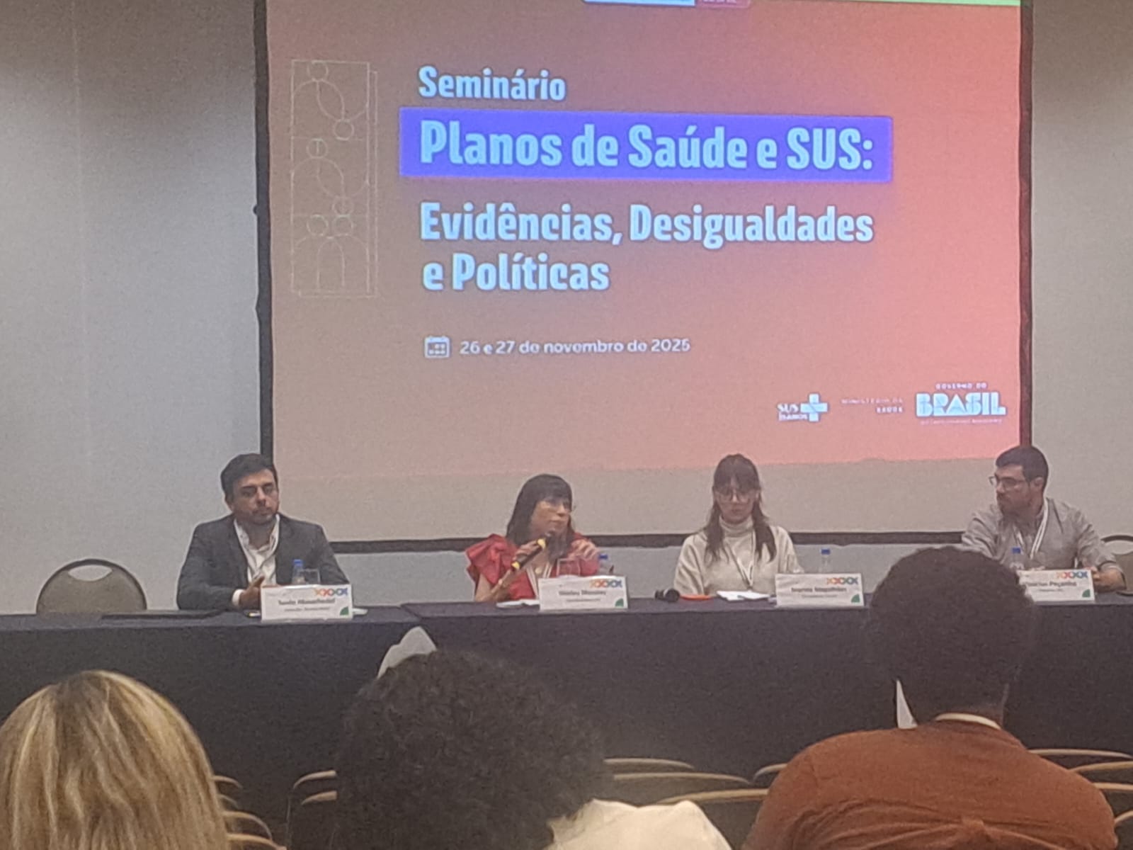 O seminário discutiu a conjuntura dos planos de saúde e sua relação com o Sistema Único de Saúde (SUS), abordando temas como tributação dos planos subsegmentados e o programa “Agora Tem Especialistas”. Na mesa conduzida por Shirley, a metáfora dos vasos comunicantes foi utilizada para explicar os efeitos diretos entre os dois sistemas: qualquer mudança na saúde suplementar inevitavelmente impacta o SUS. Assim como na física, ao “encher” um vaso, o outro é afetado — no caso, planos simplificados e de baixa cobertura tendem a sobrecarregar o sistema público.